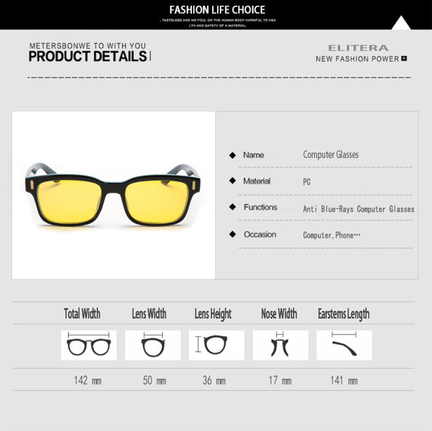 Description : With 1 purchase you will get exactly what is pictured. 1 Blue Light Filtering Eyeglass + 1 bag. These are classic shaped glasses, unisex, and comfy. These are universal size. A great buy for those that spend time in front of electronic devices.
