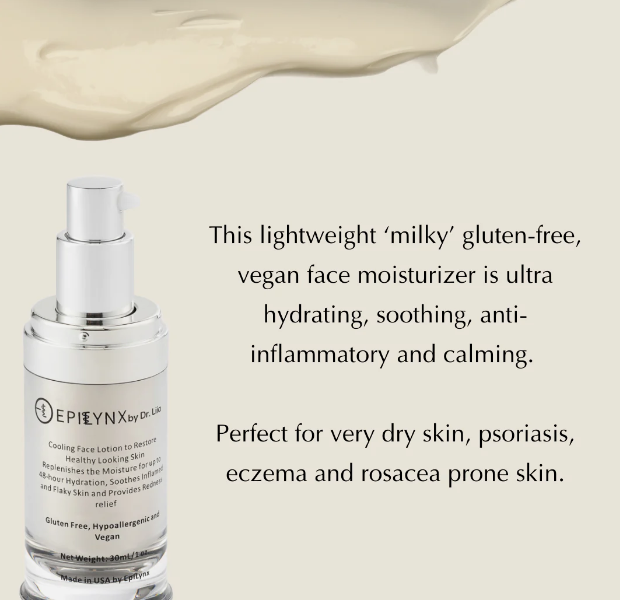 This face cream is gluten-free and hypoallergenic. It cools, calms, and nurtures the skin. It contains Aloe Vera, which soothes sunburns and skin conditions.