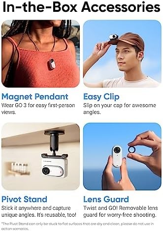 Insta360 GO 3 (64GB) – Small & Lightweight Action Camera, Portable and Versatile, Hands-Free POV, Mount Anywhere, Stabilization, Multifunctional Action Pod, Waterproof, for Travel, Sports, Vlog