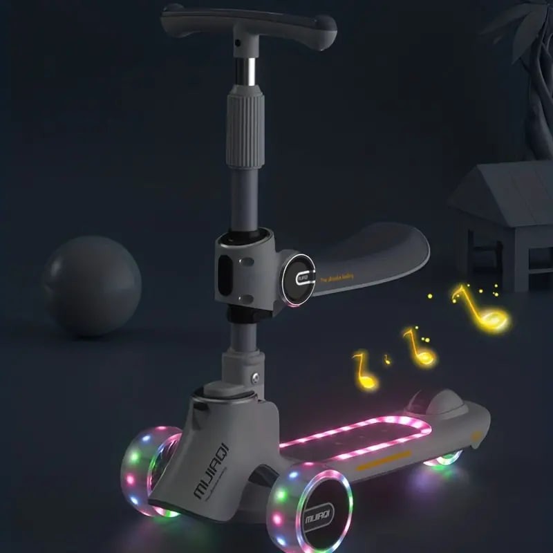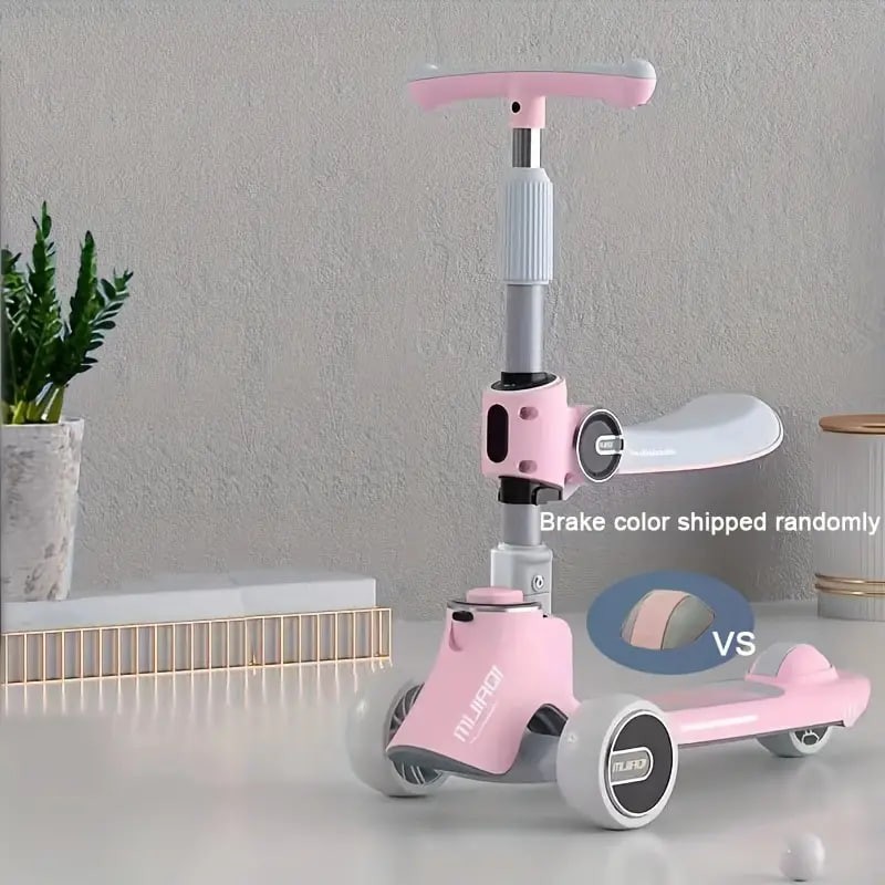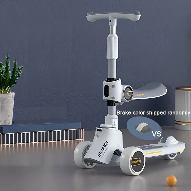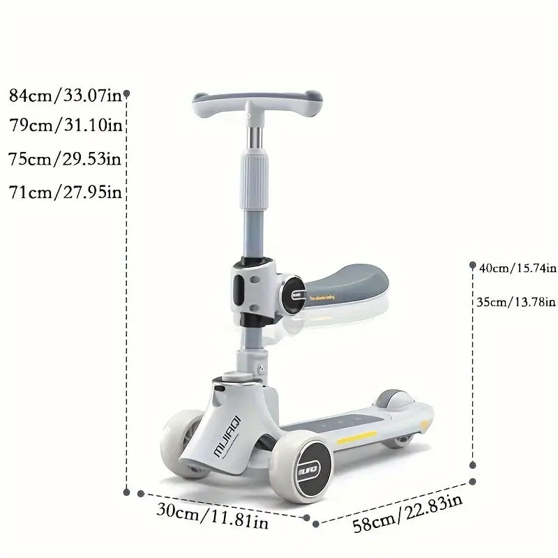 Kids Scooter With Foldable/Detachable Seat - 4 Height Adjustable 3 Wheels Toddler Scooter For Boys & Girls