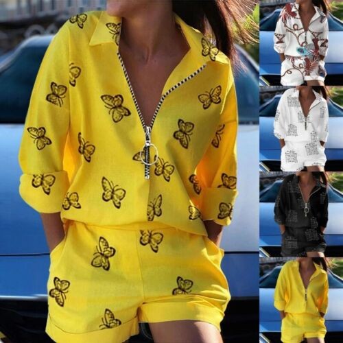 Ladies Two Piece Outfit Long Sleeve Jogger Set Women Loose Fit Sports V Neck New