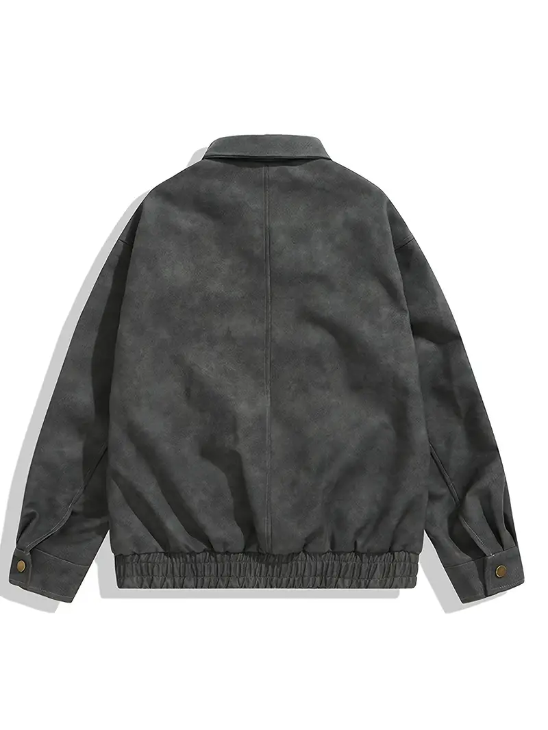 Men's Stylish Vintage Style Faux Leather Jacket With Pockets, Casual Breathable Lapel Zip Up Long Sleeve Jacket For Outdoor Activities