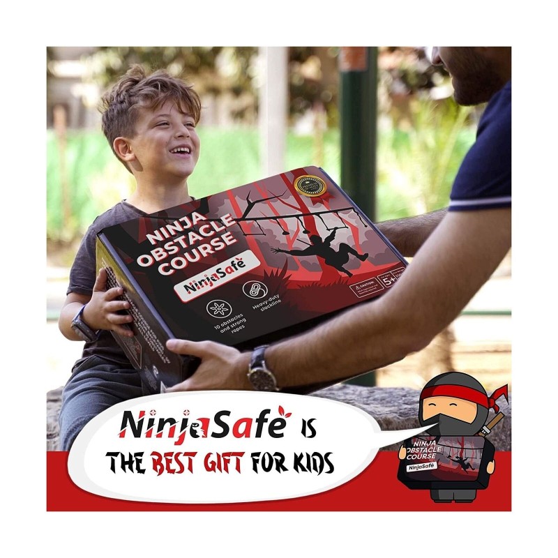 Ninja Obstacle Course for Kids Backyard - 10 Durable Obstacles and 50' Slackl...