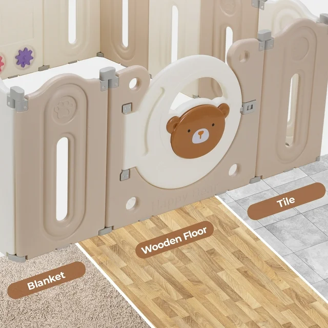 【Parents' Helper】The bear safety playpen not only provides a space for your baby to grow and develop independently but also gives parents some well-deserved "me" time. You can place your baby inside the playpen with foam balls and toys, allowing them to play while you attend to your daily tasks.