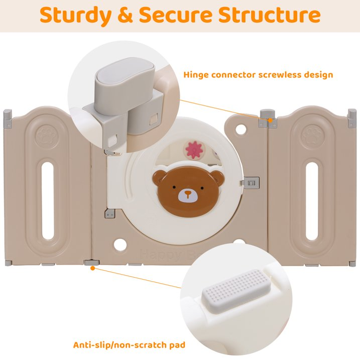 【Safe Play Area】25" baby fence height provides a secure space for infants learning to walk, prevents easy turn out, and won't block the view. Rounded corners minimize the risk of accidents, and the smooth polished surface protects your baby's delicate skin.