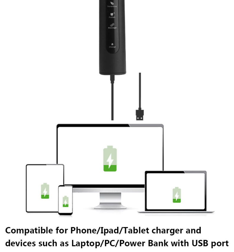 • LONG BATTERY LIFE rechargeable, safe and easy, low battery reminding and auto shut off after full charge, compatible with any charger or equipment with a USB port. Electric toothbrush convenient to use at home or travel.