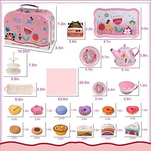 Tea Party Set for Little Girls,PRE-WORLD Princess Tea Time Toy Including Dessert